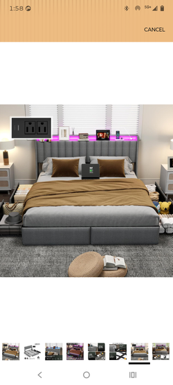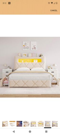 Brand New in box modern queen size platform bed with LED lights charger station and drawers!!!$170Houston, TX