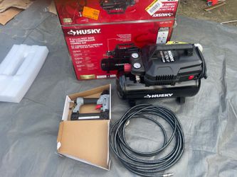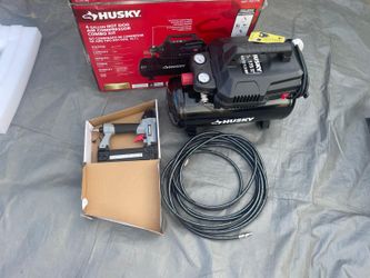 Se 4 Gal. 175 PSI Electric Oil-Free High Performance Air Compressor with 25 ft. PVC Air Hose and 2-in-1 Brad Nailer/Stapler $150Farmersville, CA