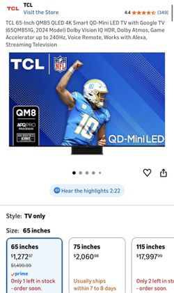 TCL 65-Inch QM85 QLED 4K Smart QD-Mini LED TV with Google TV$700Houston, TX