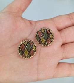 Vintage 1972 Sarah Coventry Mosaic clip earrings red green yellow harlequin joker clown style$32Gilbert, AZ