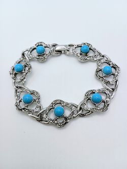 Vintage Signed Sarah Coventry Collectors Item 1973 Faux Turquoise Silver Tone Blue Bracelet $25Chandler, AZ