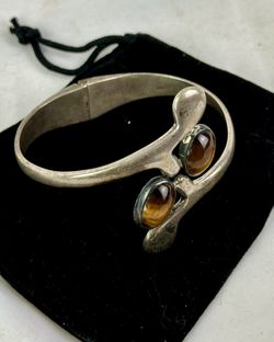 Tarnished, Sterling Hinged Bracelet , Pair of Beautifully Polished Tiger’s Eyes$89Phoenix, AZ