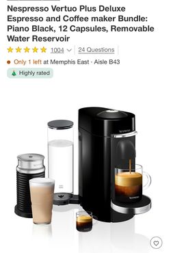 Nespresso Vertuo Plus Deluxe Espresso and Coffee maker Bundle: Piano Black, 12 Capsules, Removable Water Reservoir$100Memphis, TN