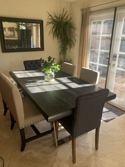 Modern Dark/Black Wood Dining Table Set 6 Chairs (four black, two beige) by Design Evolution $800Laguna Niguel, CA