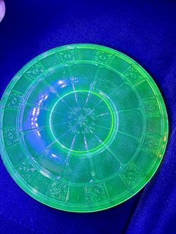 Jeannette Doric Depression Uranium Glass Saucer/Dessert plate Vintage 1(contact info removed) 5 3/4”$20Laurel Park, WV