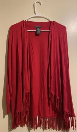 Chelsea & Theodore Red Women’s Open-Front Fringe Long Sleeve Cardigan Sweater Size Small $2Anaheim, CA