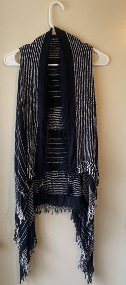 Kensie Black/White Women's Chunky Knit Fringe Sleeveless Open Cardigan Size Medium $5Buena Park, CA