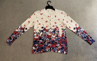 White Floral Women’s Button Up Crewneck Sweater Size US PM$3Anaheim, CA