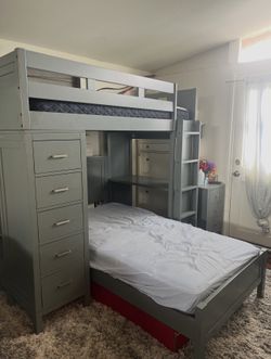 Pottery Barn loft bed set in great condition. Solid and sturdy wood construction. Includes a twin loft bed on top and a full-size bed on the bottom,$650Anaheim, CA