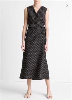 Vince Camuto Trellis Plaid Draped Sleeveless Wrap Dress New With Tags $320New York, NY