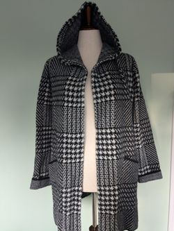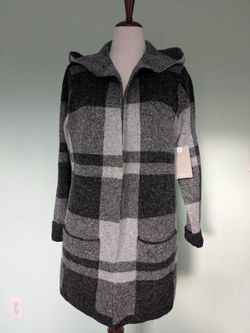 "Cyrus" Plaid Open Front, Gray/Black Hooded, Long Sweater/Jacket, size L, New $65Alpharetta, GA
