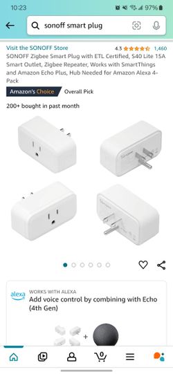 SONOFF Zigbee Smart Plug with ETL Certified, S40 Lite 15A Smart Outlet, Zigbee Repeater, Works with SmartThings and Amazon Echo Plus, Hub Needed for A$20Garden City P, NY