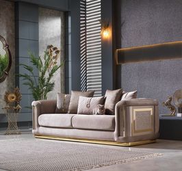 Luxurious Beige Sofa with Gold Embellishments and Textured Side Panels – Modern Elegance Collection$849Saddle Brook, NJ