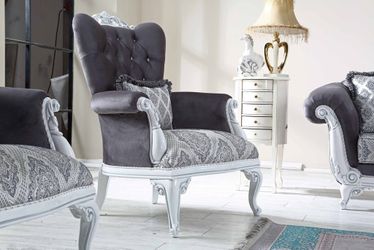 Luxury French Style Accent Chair - Elegant Gray Velvet Armchair with Carved Details$499Saddle Brook, NJ