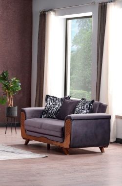 Anthracite Storage Loveseat with Intricate Wood Detailing - Convertible Sofa for Modern Living Spaces$499Saddle Brook, NJ