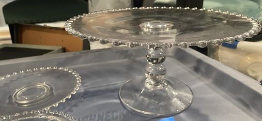 Imperial Glass Candlewick Clear Cake Stand Plate Beaded Edge Hand Blown Vintage Cake Stand