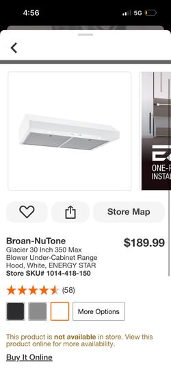 Broan-NuTone Glacier 30 Inch 350 Max Blower Under-Cabinet Range Hood, White, ENERGY STAR$75Phoenix, AZ