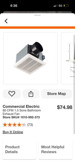 Commercial Electric 80 CFM 1.5 Sone Bathroom Exhaust Fan$35Phoenix, AZ