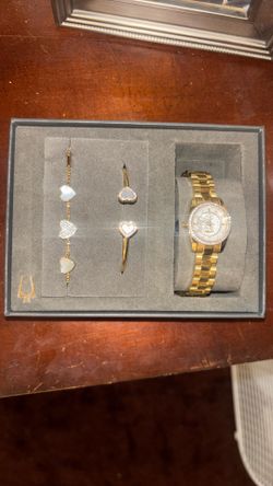 Bulova Women's Gold-Tone Crystal Watch Box Set with Matching Bracelets $200Modesto, CA