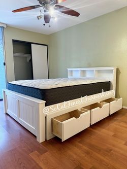 Queen Bed And Mattress With Drawers $740Long Beach, CA