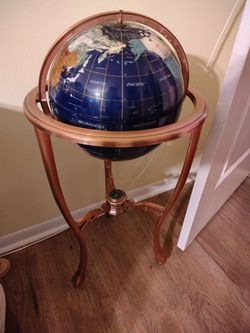 Gemstone Floor Base World Globe Semiprecious inlay lapis lazuli, brass,$300Tampa, FL