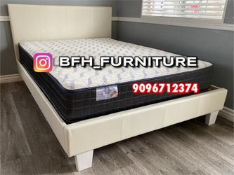 Queen Size White Platform Bed With Orthopedic Mattress $359Huntington Park, CA