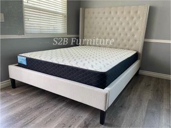 Queen Ivory Beige Wingback Bed With Ortho Mattress Included!$479Hesperia, CA