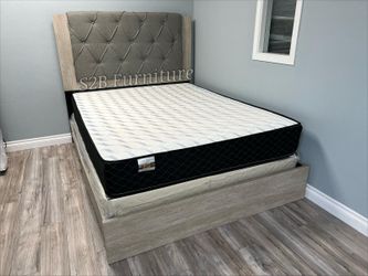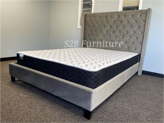 Queen Grey Wingback Bed With Orthopedic Mattress Included!!$475Riverside, CA