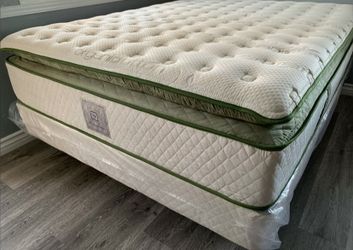 14in QUEEN Organic Elite Hybrid Gel Europillowtop Mattress And Boxspring $379Laguna Niguel, CA
