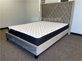 Queen Grey Wingback Bed With Ortho Mattress Included!!$475Fontana, CA