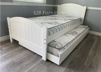 Full Twin White Trundle Bed With Ortho Mattress Included!!$479Long Beach, CA