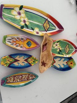 Clay Art Surf’s Up Surfboard Design Chip & Dip Beach Ceramic Serving Platter Lot$50Santa Rosa Beach, FL