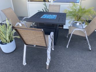 Brand New Patio Set Resin Chairs Wood Fire Pit $240Riverside, CA