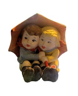 Vintage Ceramic Boy And Girl Under Umbrella Figurine $10Russell Center, OH