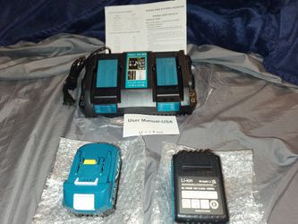 2 brand new batteries and Charger and 18 V battery 6 Amp. Fitz, makita., battery equipment Brand new.$115Glmn Hot Spgs, CA