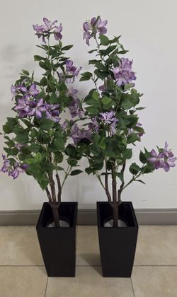 PAIR of 50" Faux Purple Hibiscuses in 16" Black Resin Planters (2 for $100) @ Lasting Creations$100Oakland Park, FL