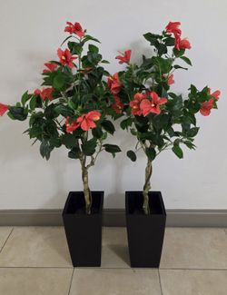 PAIR of 46" Faux Red Hibiscuses in 16" Black Resin Planters @ Lasting Creations$100Oakland Park, FL
