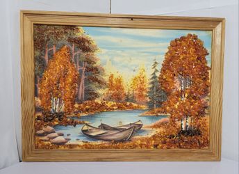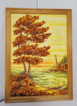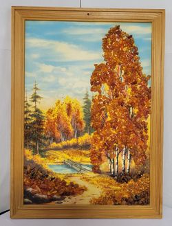 Framed Vintage Handmade USSR Soviet Amber Landscape Art 9.5"×13"$40Queens, NY