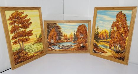 Framed Vintage Handmade USSR Soviet Amber Landscape Arts 9.5"×13" Set of 3$100Queens, NY