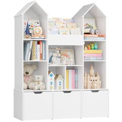 Toy Storage Organizer with Castle Roof, Large Kids Bookshelf Dollhouse with 3 Movable Drawers and 9 Storage Cubbies, Toy Organizers with 3-Tier Book R$80Ontario, CA