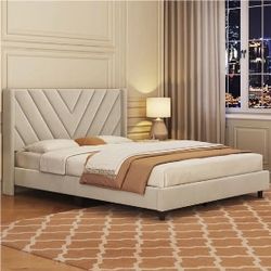 Queen Bed Frame Upholstered Platform Bed with Wing Side/Wooden Slat Support/Tufted Headboard with Wing Side/Mattress Foundation/No Box Spring Needed,B$125Rancho Cucamonga, CA