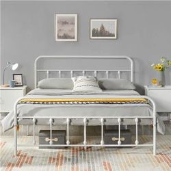 Classic Iron Platform Bed with High Headboard and Footboard, Strong Metal-Framed Bed with Storage White$100Fontana, CA