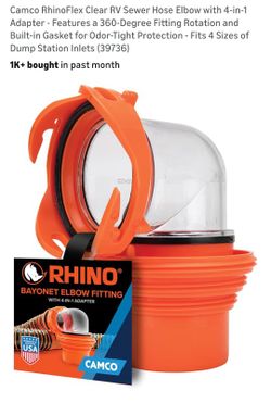 Camco RhinoFlex Clear RV Sewer Hose Elbow with 4-in-1 Adapter - Features a 360-Degree Fitting Rotation and Built-in Gasket for Odor-Tight Protection$10Oxnard, CA