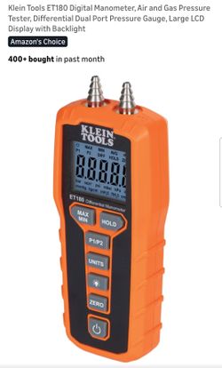 Klein Tools ET180 Diaital Manometer, Air and Gas Pressure Tester, Differential Dual Port Pressure Gauge, Large LCD Display with Backlight$80Oxnard, CA