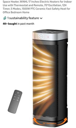 17 Inches Electric Heaters for Indoor Use with Thermostat and Remote, 70 0scillation, 12H Timer, 5 Modes, 1500W PTC Ceramic Fast Safety Heat for Offic$30Oxnard, CA