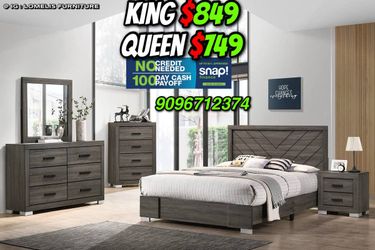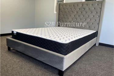 Queen Grey Wingback Bed With Ortho Mattress Included @!$475Yorba Linda, CA
