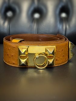 Vintage Hermès Ostrich Collier De Chien Cognac Brown Belt$1,350Boca Raton, FL
