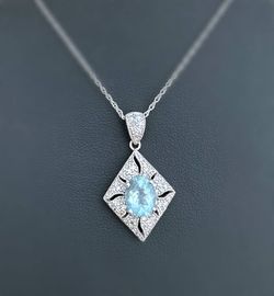 Jewelry 10k solid white gold Pendant natural diamonds 0.30CTW diamonds aquamarine 1.5CTW triangle charm$350Boca Raton, FL