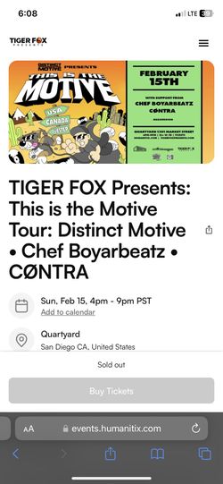 TIGER FOX Presents: This is the Motive Tour: Distinct Motive • Chef Boyarbeatz • CØNTRA$200Spring Valley, CA