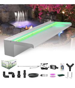 Pool Fountain Stainless Steel Outdoor Pond Spillway Waterfall with Wider Water Flow Platform Multi-Color LED Light Spray Indoor Waterfall Fountains fo$99Riverside, CA